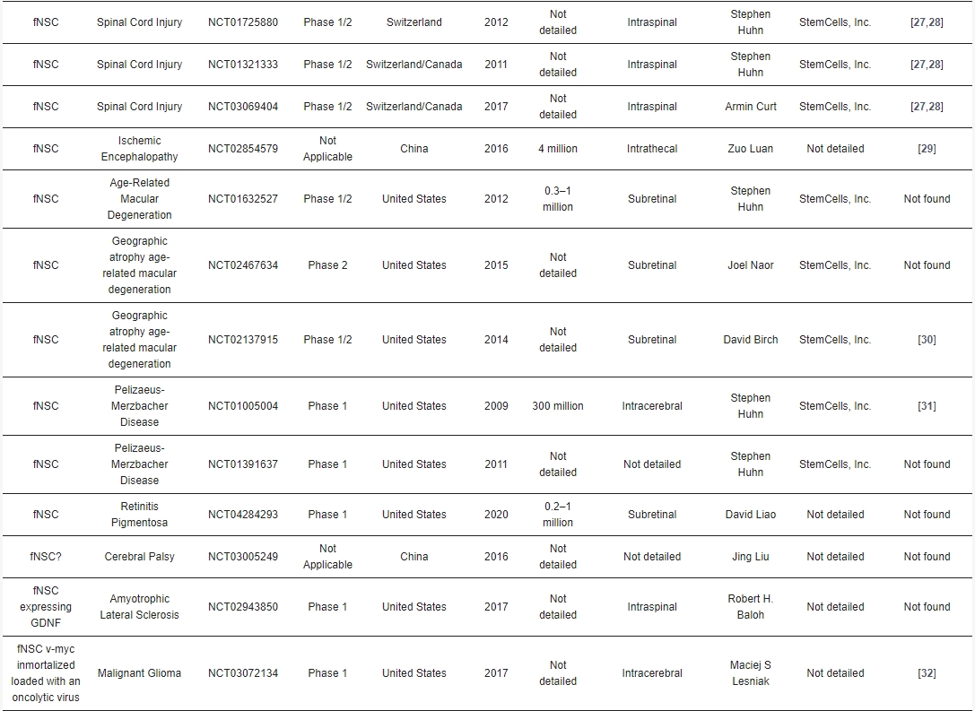 迄今為止進行的大多數(shù)臨床試驗都采用從人類胎兒中樞神經(jīng)系統(tǒng)(大腦和/或脊髓)獲得的NSC(表格1)。大多數(shù)情況下,組織是從選擇性終止妊娠中收集的,這引起了重大倫理問題,并受到許多人基于道德和宗教理由的反對。反墮胎活動人士提出了使用胎兒組織可能鼓勵婦女墮胎的想法,盡管沒有證據(jù)表明使用胎兒組織用于治療或商業(yè)目的會增加選擇墮胎的數(shù)量。然而,fNSC的使用存在社會爭議并受到嚴格監(jiān)管,在一些國家被禁止。