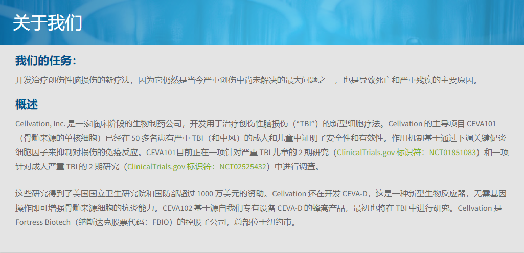 在早期的臨床研究之后,自體BMMNCs (CEVA101) 的開(kāi)發(fā)被美國(guó)食品和藥物管理局 (FDA) 授予再生醫(yī)學(xué)先進(jìn)療法(RMAT) 治療TBI的資格。CEVA101目前正處于治療兒童和成人急性重度TBI的2期臨床開(kāi)發(fā)階段,盡管迄今為止尚未公布結(jié)果。