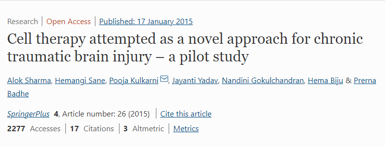 干細(xì)胞療法治療慢性創(chuàng)傷性腦損傷的細(xì)胞療法臨床研究