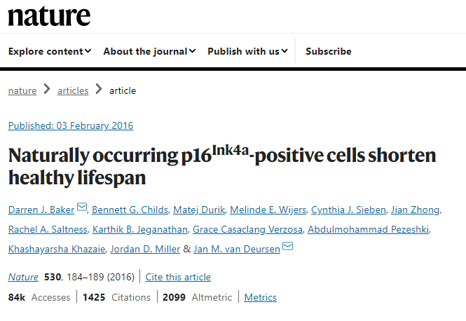 2016年2月,《Nature》雜志刊登了美國梅奧診所分子生物學(xué)家Baker的最新成果:以NK細(xì)胞為主的免疫細(xì)胞清除衰老細(xì)胞可使動物壽命延長20%-30%。