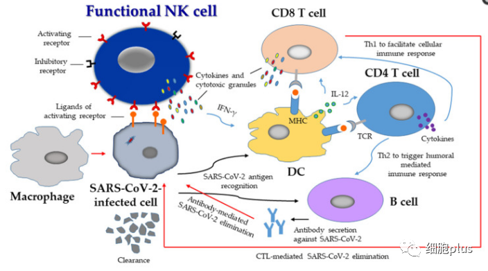 因此,足夠數(shù)量的活化功能性NK細胞發(fā)揮增強的脫粒和細胞因子分泌,并啟動先天細胞毒性功能,以在早期階段消除新型冠狀病毒感染的細胞。