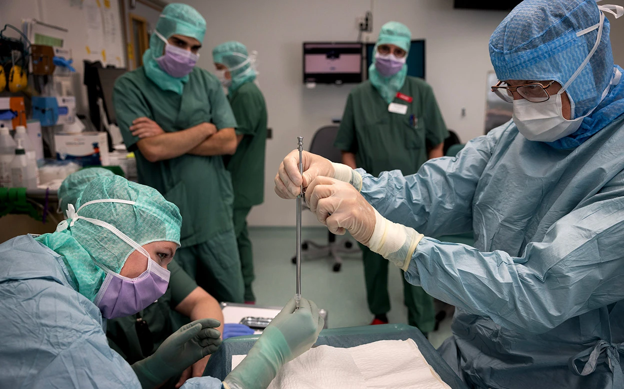 瑞典隆德斯科訥大學醫院的一個團隊正在準備一根針頭,用于將細胞移植到患者大腦中以治療帕金森癥。圖片來源:?sa Sj?str?m 為《自然》雜志拍攝