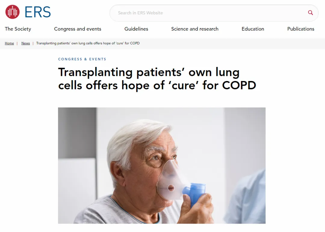 9月27日至10月1日,在全球呼吸領(lǐng)域頂級會議——第35屆歐洲呼吸學(xué)會(European Respiratory Society,ERS)年會上,一項(xiàng)標(biāo)志著慢性阻塞性肺疾病(COPD)治療進(jìn)入再生醫(yī)學(xué)新紀(jì)元的突破性臨床研究正式公布。[10]