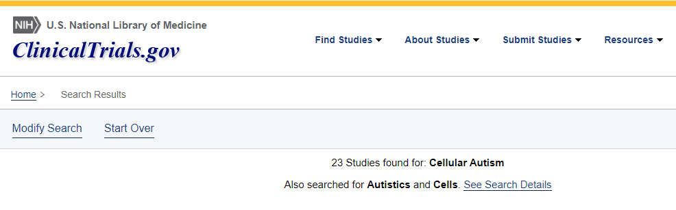 2023年5月,使用搜索詞 “自閉癥譜系障礙和細胞療法 “對美國NIH臨床試驗數(shù)據(jù)庫(clinicaltrials.gov)進行了搜索,發(fā)現(xiàn)了23項。