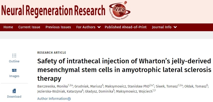 2019年,波蘭馬祖里大學(xué)醫(yī)學(xué)院神經(jīng)內(nèi)科對43名ALS患者的頸部、腰部和胸部每月注射兩次平均0.42×10^6WJ-MSC,未顯示任何不良反應(yīng),注射MSCs(占鞘內(nèi)和肌肉內(nèi)注射的組合)的患者的ALS功能評(píng)定量表-復(fù)蘇評(píng)分和用力肺活量降低的速度。證實(shí)了MSC治療的安全性和有效性。