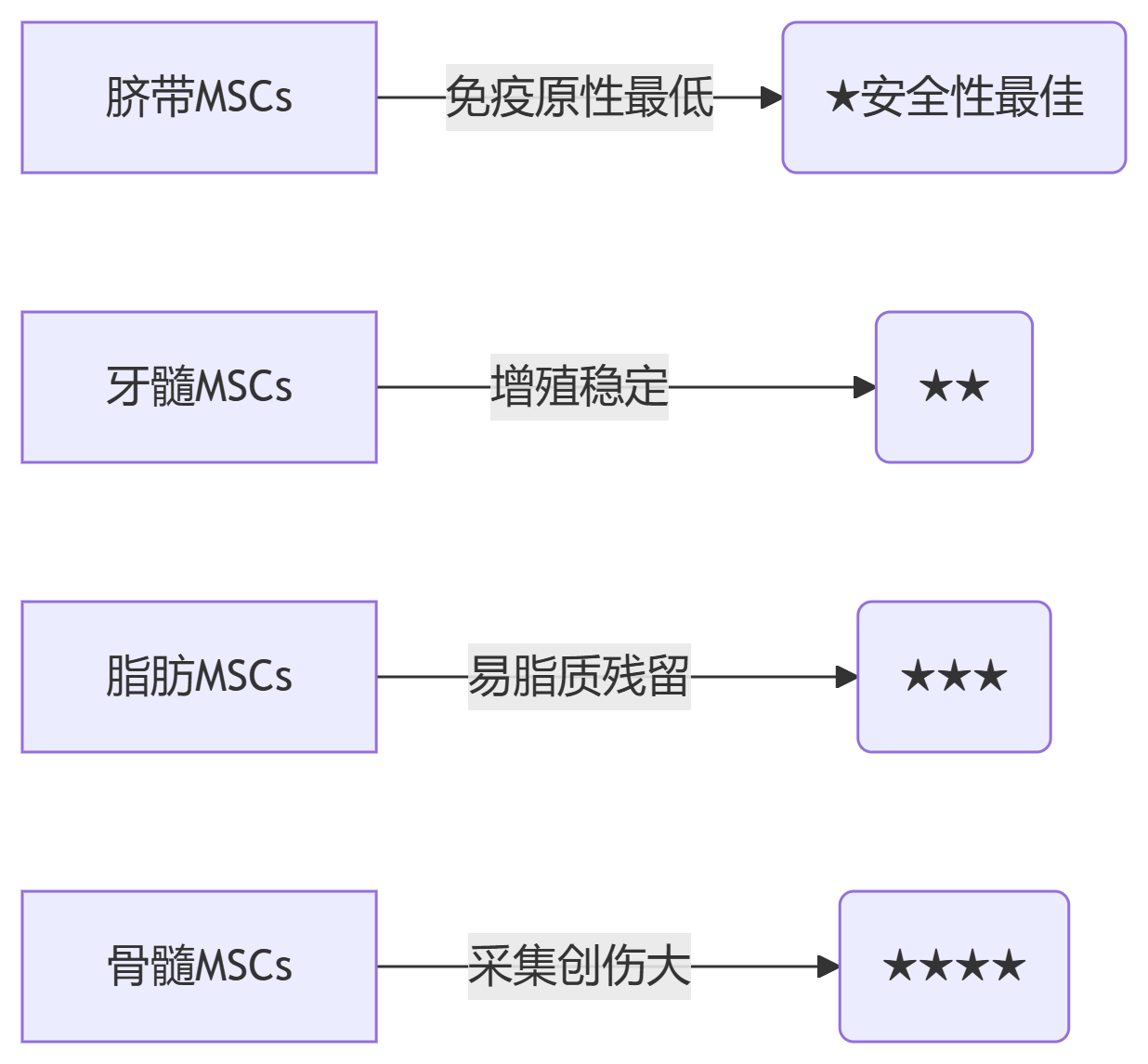 你的風險等級由這些因素決定:細胞來源——安全性排序