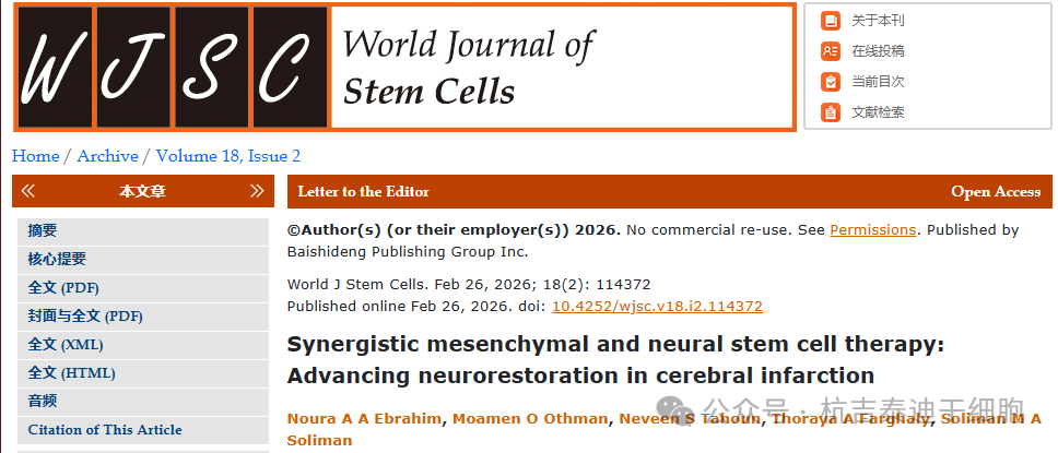 在此困局中,Yang等人[1]發(fā)表于《世界干細胞雜志》的最新臨床研究,以其開創(chuàng)性的設(shè)計,為神經(jīng)修復(fù)領(lǐng)域投下了一束耀眼的光芒。該團隊首次在急性腦梗死患者中探索了間充質(zhì)干細胞(MSCs)與神經(jīng)干細胞(NSCs)聯(lián)合移植的療效,其結(jié)果不僅令人鼓舞,更揭示了協(xié)同療法的深層邏輯。本研究基于此重要突破,以三個核心問題為綱,對其科學(xué)內(nèi)涵、臨床證據(jù)與未來路徑進行系統(tǒng)闡述。