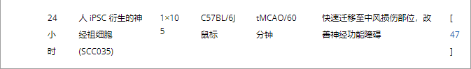 表1:靜脈和動脈NSC移植治療腦缺血的代表性實驗研究。