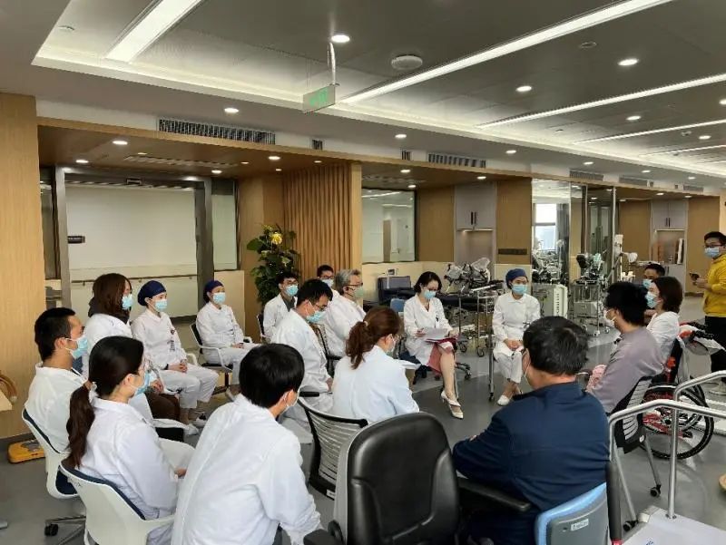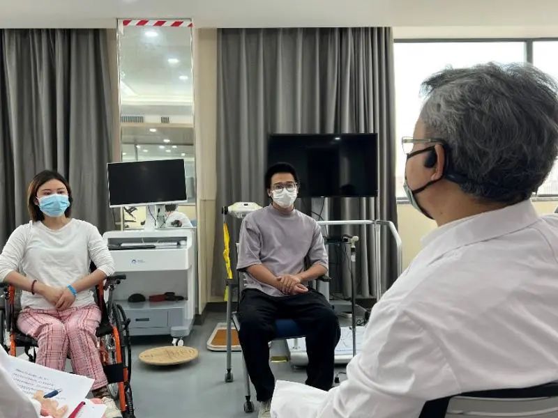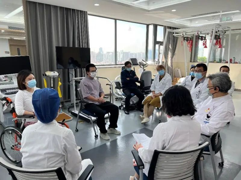 教育處黃蕾副處長從醫(yī)患溝通、心理疏導等方面對兩位受試者及家屬進行了詢問和指導,“如果碰到一個和您有類似遭遇的新患者,您會如何開導他”,這樣開放式的問題讓患者通過另一個視角理解和解讀自身的治療過程和對疾病診治的認識。病區(qū)護理部第榮靜護士長、項目Sub-PI吳周睿醫(yī)師、康復組趙麗娟醫(yī)師也從不同角度與趙先生和劉女士這2個月住院期間的治療體會進行交流。