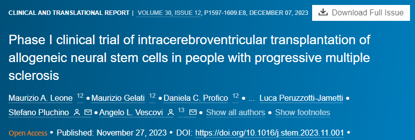 多發性硬化癥:2023年,一項由國際著名的醫學科研機構共同合作完成,利用人類神經干細胞(hNSC)治療進行性多發性硬化癥(SPMS),在15位患者的試驗中取得了令人矚目的突破。結果表明是一種安全且耐受的方法。研究成果,發表在近期的《細胞與干細胞》雜志上。