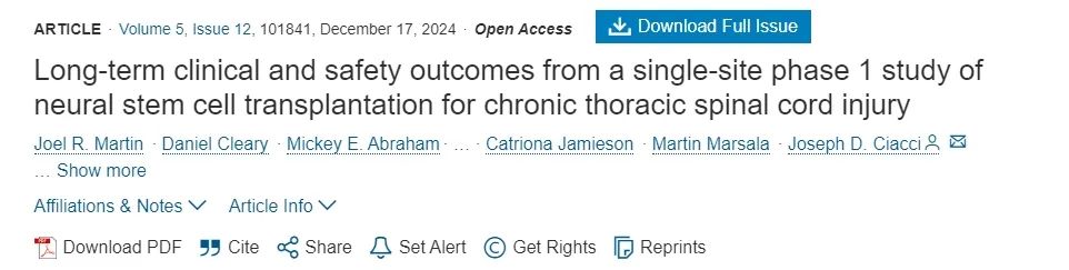 長期療效與安全性驗證:2024年,加州大學圣地亞哥分校醫學院研究人員主導的一項I期臨床試驗,選取了四名完全性Asia-A級胸部脊髓損傷患者,這些患者損傷時間均超一年且經其他治療無效。每位受試者接受來自同一株nsi-566神經干細胞系的多次注射,總劑量達兩千萬個細胞,采用浮動插管技術在雙側進行三次注射。