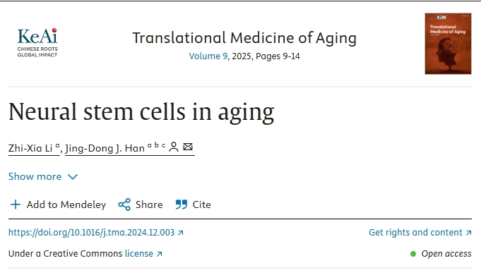 近日,國際期刊雜志“Translational Medicine of Aging”發表了一篇“Neural stem cells in aging”(衰老中的神經干細胞)的文章。