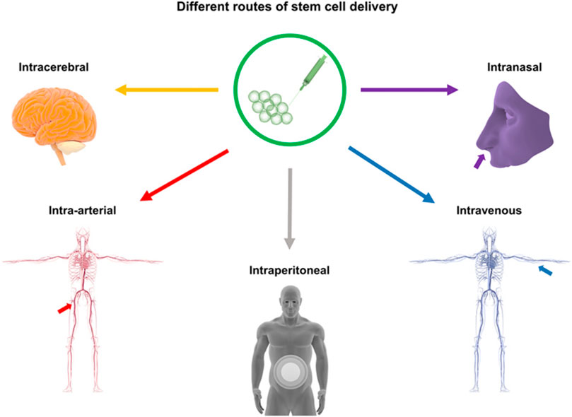 包括鼻內(nèi)給藥,該方法利用嗅神經(jīng)通路,可無創(chuàng)地將細(xì)胞遞送至腦內(nèi),最大限度地減少繼發(fā)性損傷。例如,Sun等人在動(dòng)物模型中發(fā)現(xiàn),鼻內(nèi)給予缺氧預(yù)處理的間充質(zhì)干細(xì)胞后,能在腦出血腦組織中檢測(cè)到這些細(xì)胞。此外,腹腔注射以及結(jié)合生物材料或納米技術(shù)的聯(lián)合給藥途徑,也在探索中,旨在進(jìn)一步提高移植細(xì)胞的存活、滯留和靶向效率(圖1)。