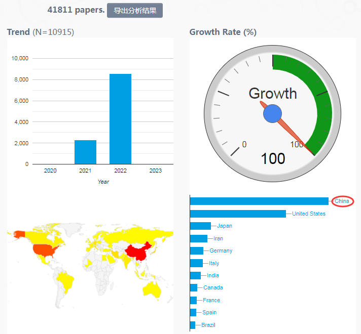 美國發(fā)表的文章數(shù)占23.6%,排在第二位。