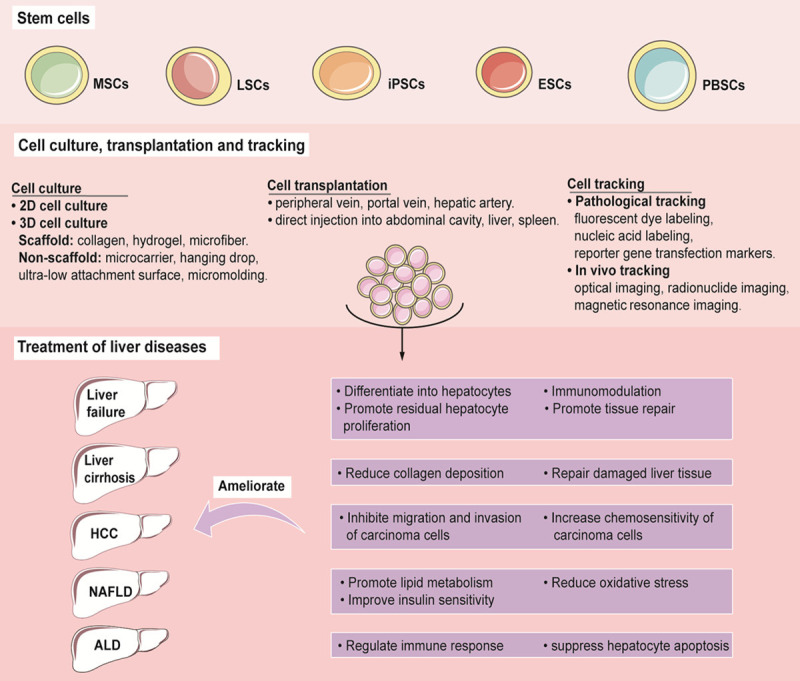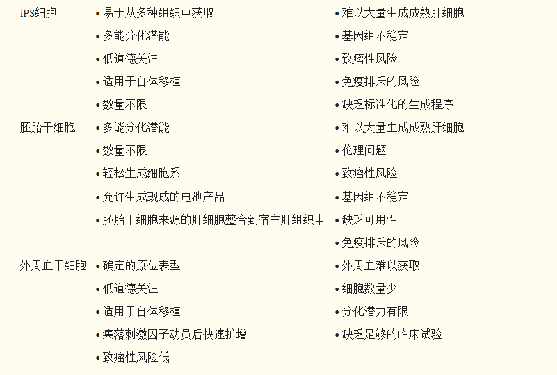 目前的研究表明,多種干細胞可以改善肝損傷并可用于治療肝病,包括間充質干細胞(MSCs)、肝干細胞(LSCs)、胚胎干細胞(ESCs)、誘導多能干細胞(iPSCs) ), 和外周血干細胞 (PBSCs) (表格1)。