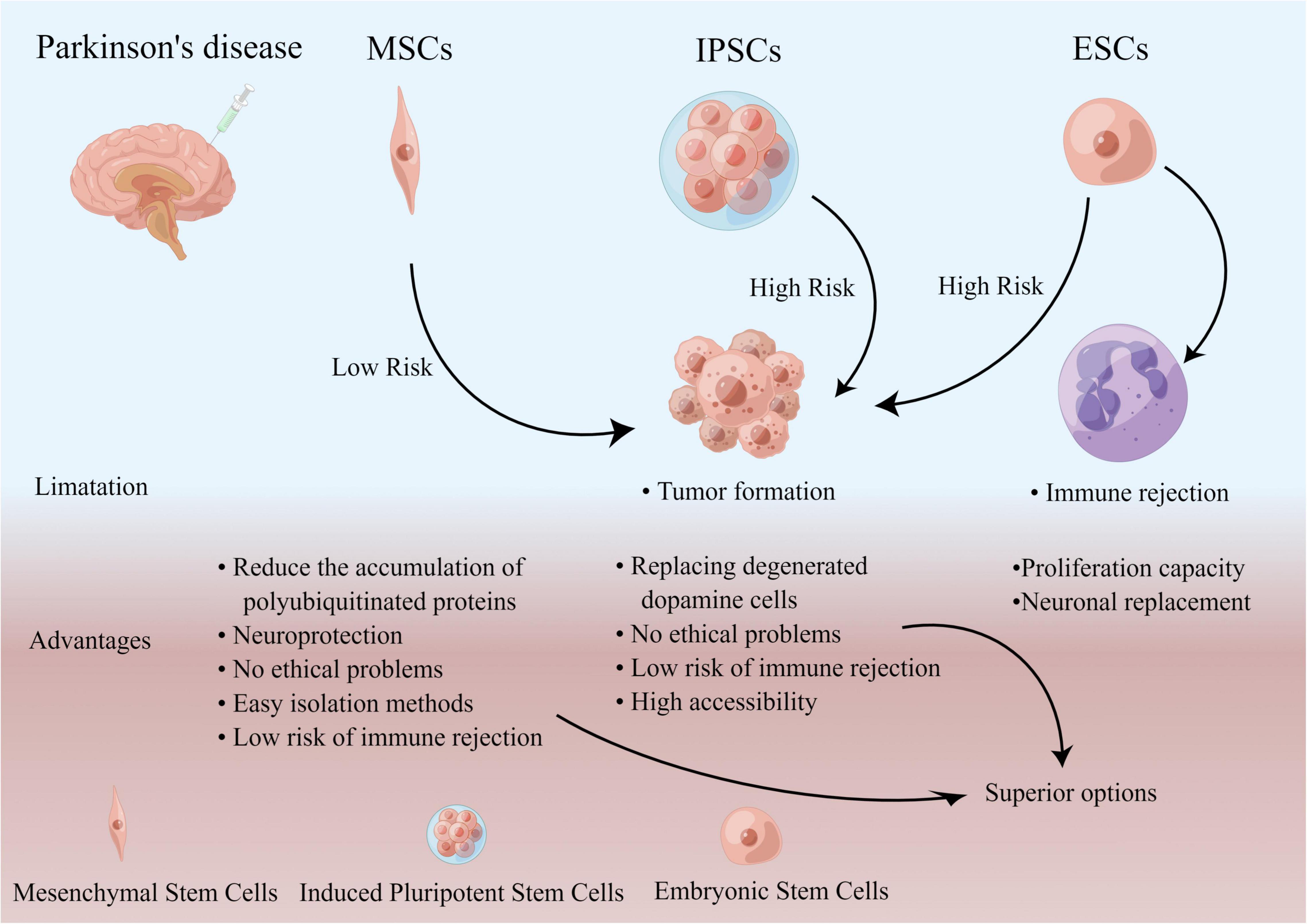 在未來,與以前使用胎兒細胞的方法相比,完成的ESC誘導(dǎo)的iPSC和MSC可能是更優(yōu)越的選擇(圖4)。
