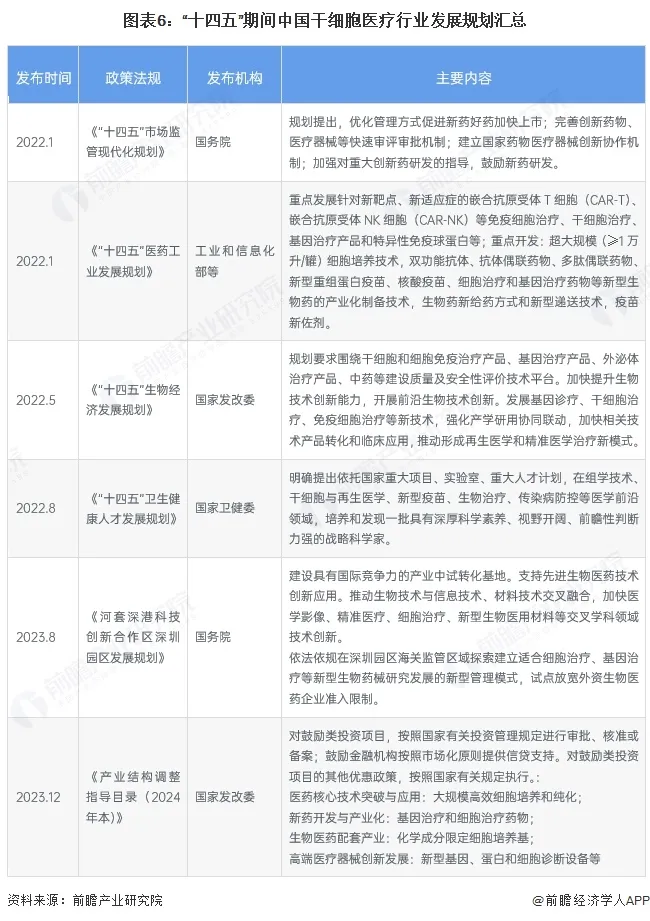 - 《“健康中國2030”規劃綱要》 明確提出發展干細胞與再生醫學,將其列為健康產業核心支柱,強調通過技術創新提升重大疾病診療水平;