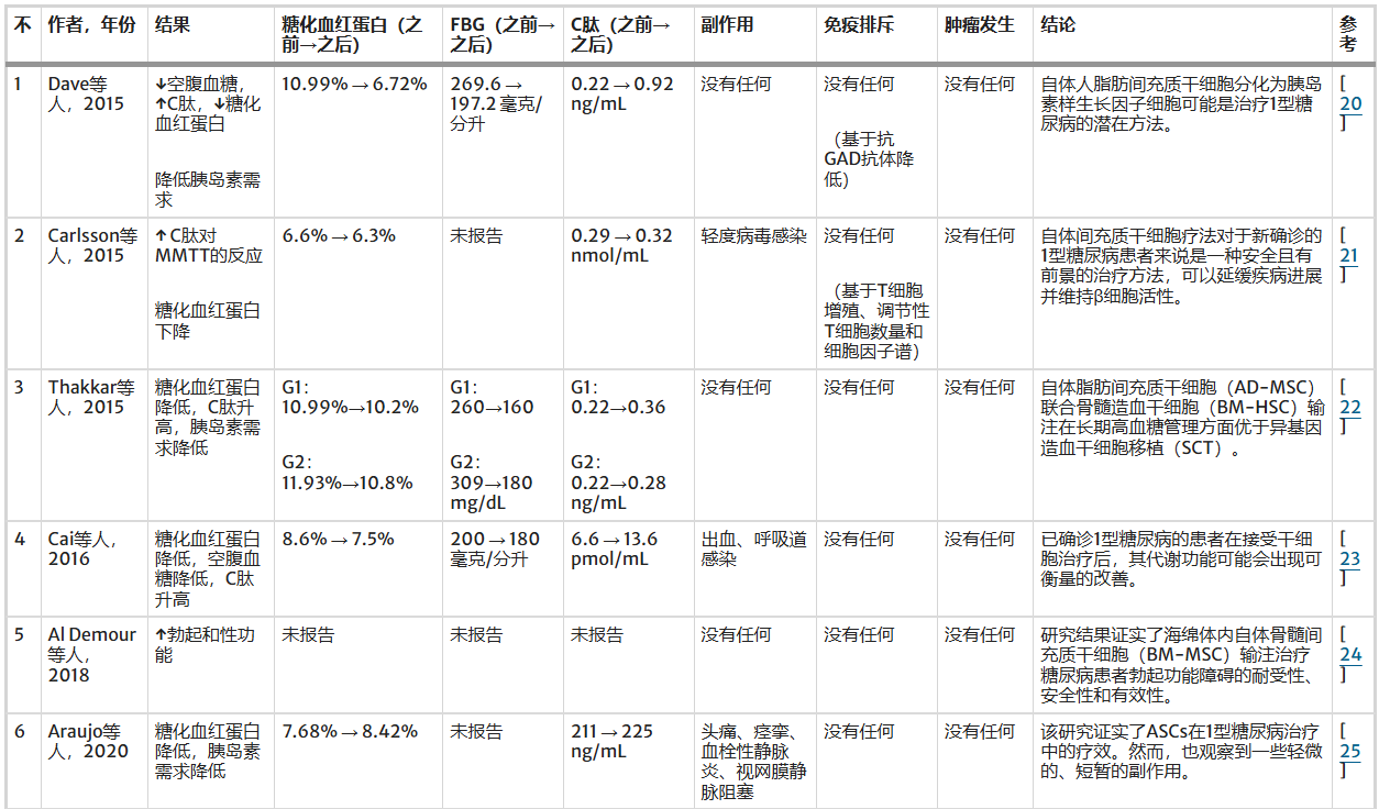 討論指出,所有被綜述的研究均顯示出積極的有效性信號,包括降低空腹血糖(FBG)和糖化血紅蛋白(HbA1c)、減少胰島素需求以及提高C肽水平,表明MSCs有助于改善或維持β細(xì)胞功能。