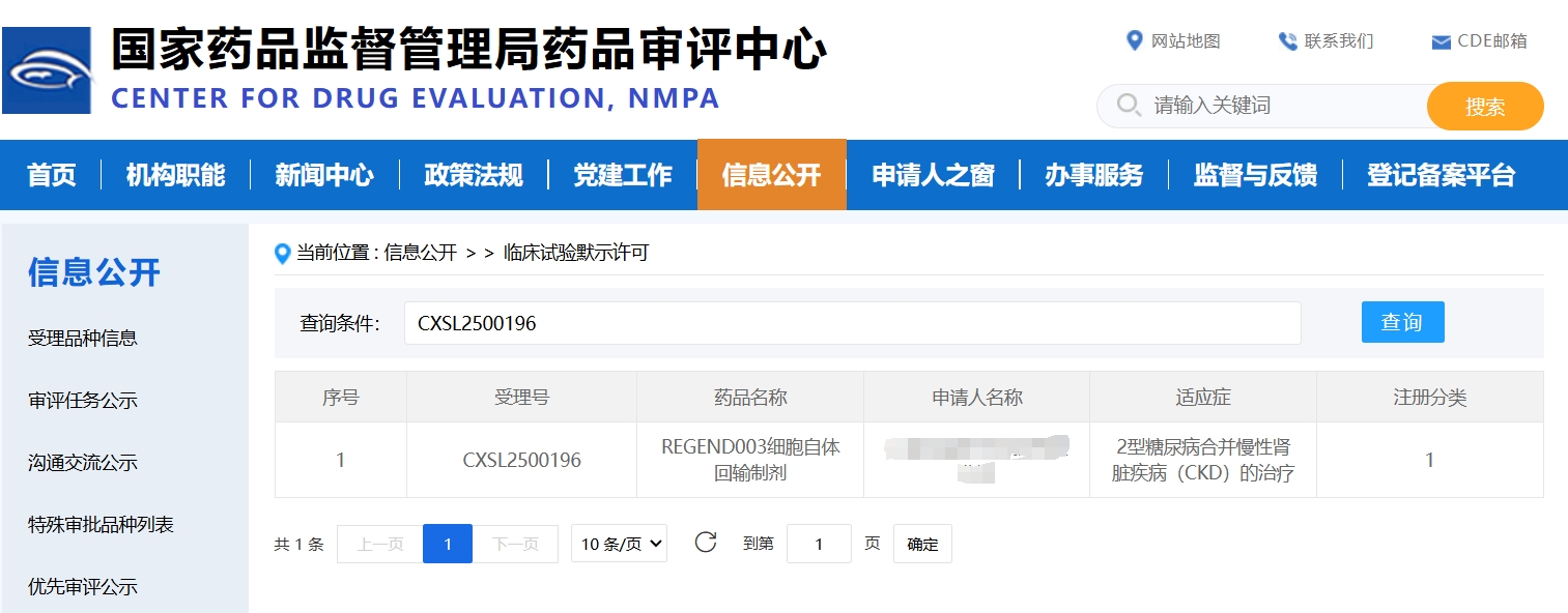 當尿液中潛藏的再生密碼被解鎖,慢性腎病患者迎來了逆轉乾坤的曙光。國家藥品監督管理局藥品審評中心(CDE)最新公告顯示,全球首個自體尿液來源腎臟干細胞療法——REGEND003細胞自體回輸制劑正式獲得《藥物臨床試驗批準通知書》(受理號:CXSL2500196)。這標志著人類在對抗慢性腎病的征途中,邁出了革命性的一步。