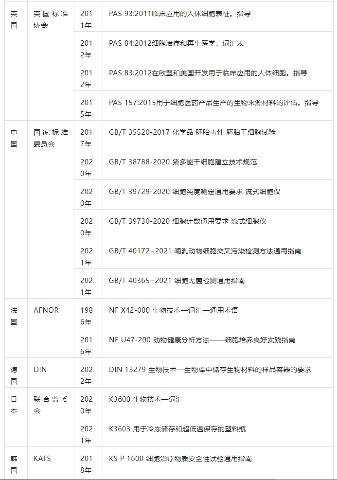 中國公布的國家標(biāo)準(zhǔn)內(nèi)容比較豐富。這些標(biāo)準(zhǔn)包括特定細(xì)胞的規(guī)格要求,以及細(xì)胞純度、計數(shù)、交叉污染和無菌測試。