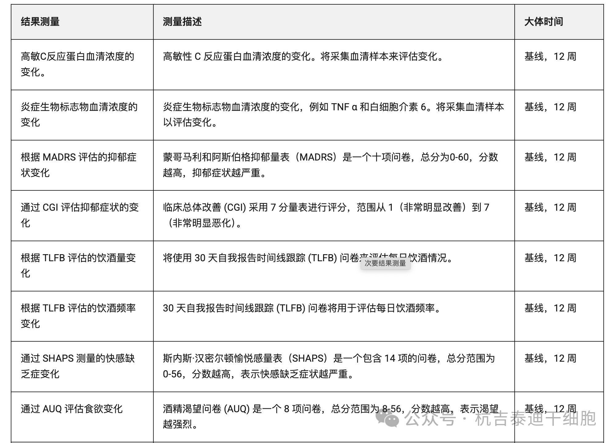 臨床試驗(yàn)二:同種異體人類(lèi)間充質(zhì)干細(xì)胞輸注與安慰劑在酒精使用障礙和重度抑郁癥中的比較