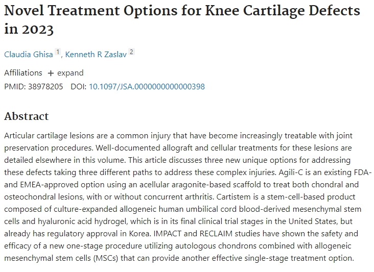 臨床結果表明,患者在接受Cartistem治療后,可出現透明樣軟骨形成。患者的國際軟骨修復學會評分、VAS評分、西安大略和麥克馬斯特大學骨關節炎指數 (WOMAC) 評分和國際膝關節文獻委員會評分均有顯著改善。
