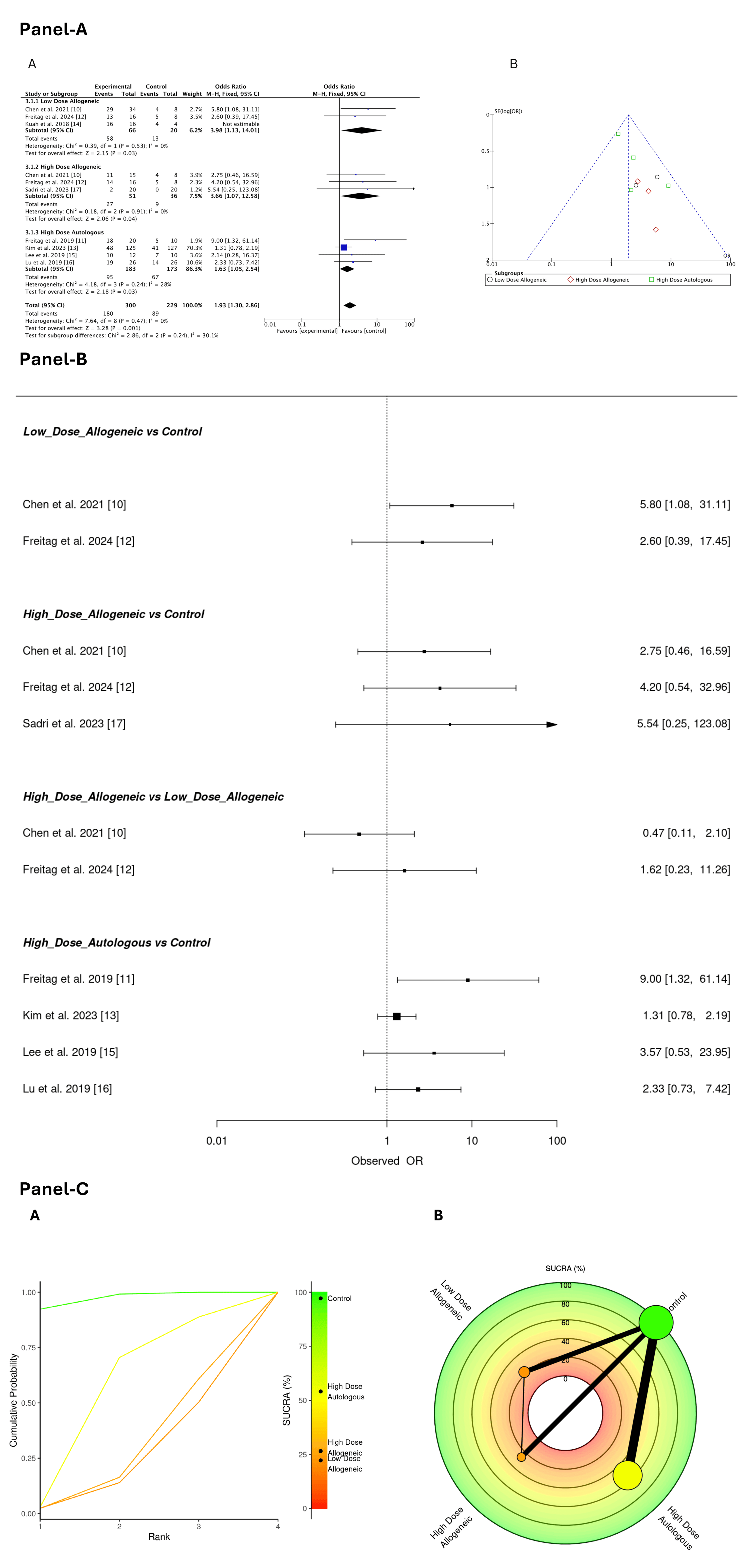 一、傳統(tǒng)薈萃分析:高劑量異基因 AD-MSCs 早期功能改善領(lǐng)先,低劑量組效果不顯著