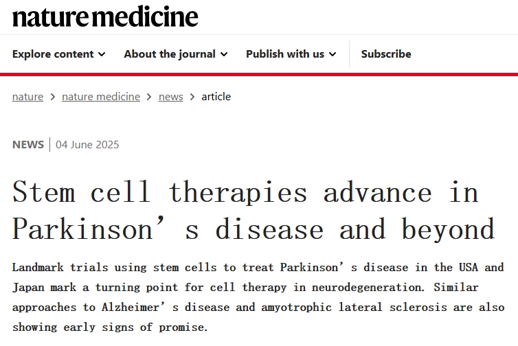 2025年4月,《自然》(Nature)雜志同時刊登了兩項干細(xì)胞治療帕金森病的重量級研究,展示了干細(xì)胞療法的巨大潛力:不僅安全有效,還有望真正實現(xiàn)對多巴胺神經(jīng)元的修復(fù)。同時也表明了,美國和日本利用干細(xì)胞治療帕金森病的試驗具有里程碑意義,標(biāo)志著神經(jīng)變性細(xì)胞療法的轉(zhuǎn)折點。治療阿爾茨海默病和肌萎縮性脊髓側(cè)索硬化癥的類似方法也初露端倪。