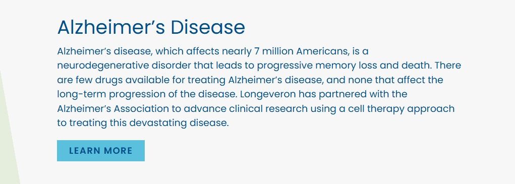 針對阿爾茨海默病,總部位于邁阿密的生物技術(shù)公司Longeveron正在開發(fā)間充質(zhì)干細(xì)胞療法laromestrocel,這種細(xì)胞來自骨髓,可以分化成各種細(xì)胞類型。