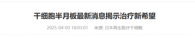 2025年3月干細胞治療半月板損傷最新臨床進展