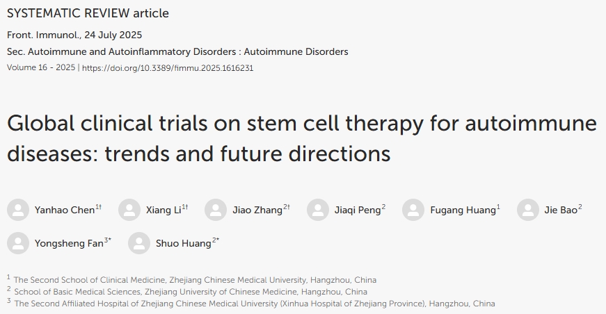 近期,浙江中醫藥大學第二臨床醫學院聯合浙江中醫藥大學基礎醫學院、浙江中醫藥大學附屬第二醫院(浙江省新華醫院)在國際醫學期刊雜志《Frontiers in Immunology》上,發表了一篇“全球干細胞治療自身免疫性疾病的臨床試驗:趨勢和未來方向”本研究分析了干細胞療法在自身免疫性疾病中的臨床試驗趨勢及其挑戰。