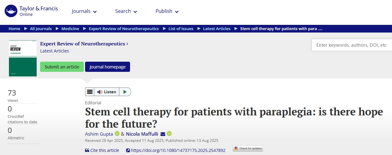主要參考資料:Gupta, A., & Maffulli, N. (2025). Stem cell therapy for patients with paraplegia: is there hope for the future??Expert Review of Neurotherapeutics, 1–7. https://doi.org/10.1080/14737175.2025.2547892