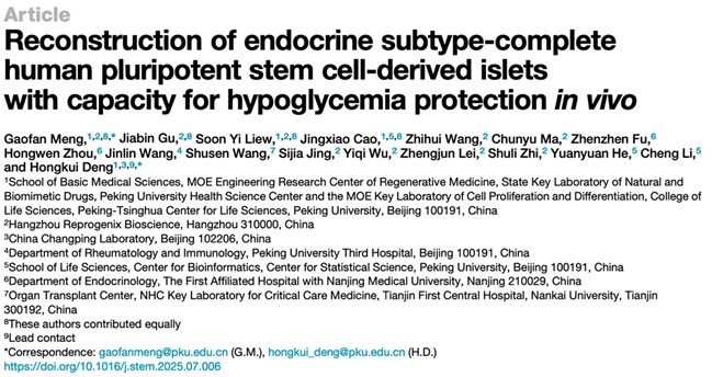 2025年8月8日,北京大學生命科學學院鄧宏魁團隊在國際頂級期刊《Cell Stem Cell》上發表了關于干細胞來源胰島功能重建的重大突破。[1]