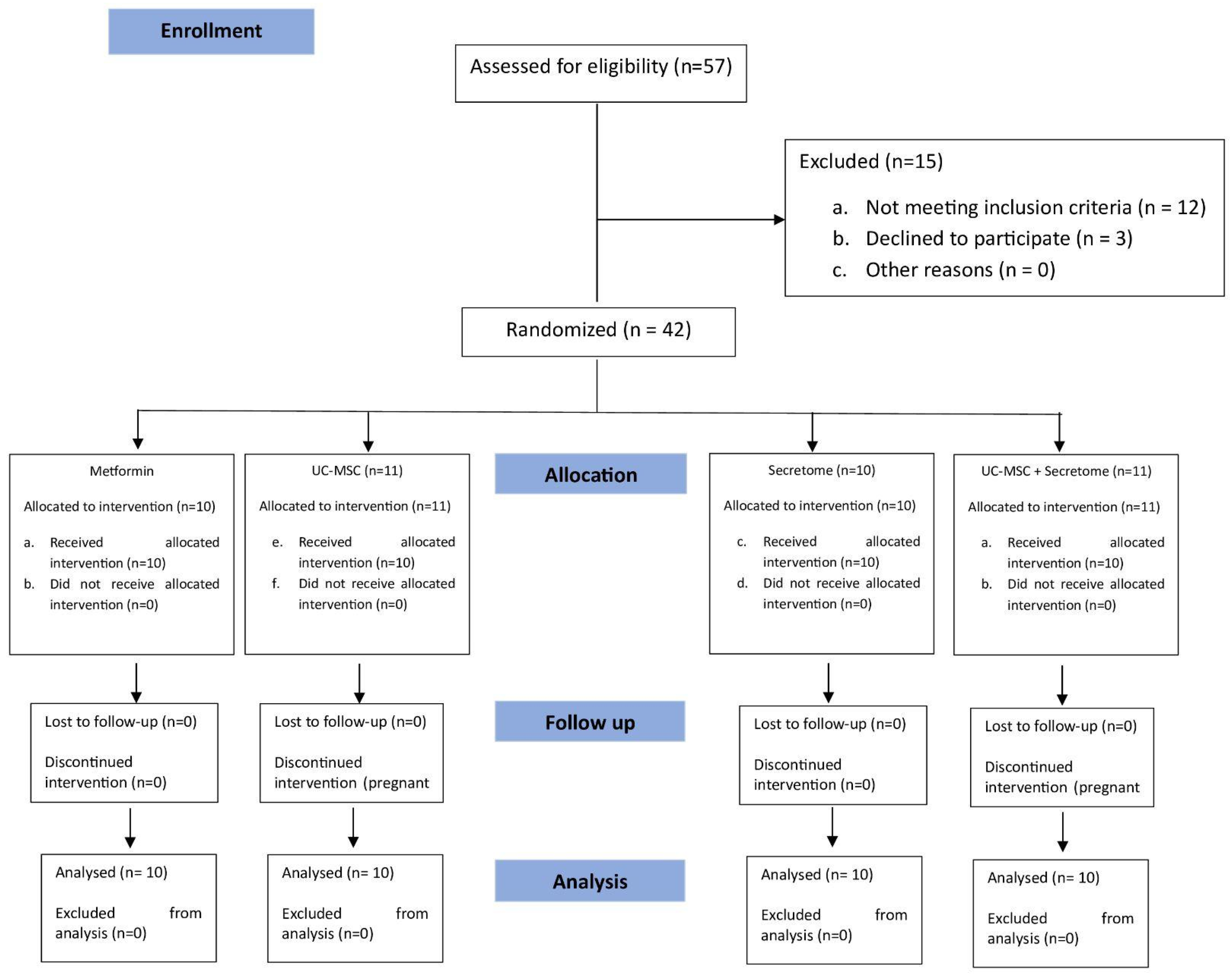 - 臨床層面:UC-MSC組取得了最高的妊娠率(40%) 和較高的排卵率(60%)。