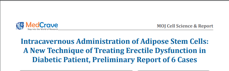 脂肪組織來源的干細胞(ASC)在分化能力、提供治療效益 、容易和安全的細胞收獲方面與骨髓干細胞相似。脂肪組織是 治療勃起功能障礙的一種潛在的干細胞來源,這凸顯了一種有效的臨床治療的可能性。干細胞具有多能分化和刺激血管生成/再生的特點。我們報道了海綿體內應用脂肪干細胞 (ASC)對糖尿病性勃起功能障礙患者的影響。