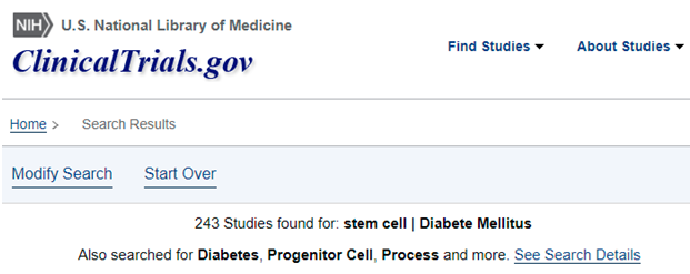截至目前,在美國國立衛生研究院的臨床試驗注冊庫clinicaltrials.gov網站上注冊的有關干細胞治療糖尿病的臨床試驗有243項,全球多個科研團隊正在用基于干細胞的策略攻克糖尿病。