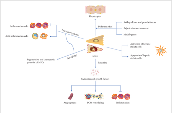 參考資料:Mengmei Zhu, Tianzhen Hua, Tao Ouyang, Huofu Qian, Bing Yu, “Applications of Mesenchymal Stem Cells in Liver Fibrosis: Novel Strategies, Mechanisms, and Clinical Practice”, Stem Cells International, vol. 2021, Article ID 6546780, 17 pages, 2021. https://doi.org/10.1155/2021/6546780。