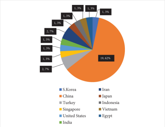 多項臨床試驗已經開始評估間充質干細胞治療肝硬化患者的安全性,觀察MSCs治療的療效,探索最佳的MSCs輸注方案。根據ClinicalTrials.gov,我們評估了2007年1月1日之后開始的臨床研究。結果顯示有31項臨床試驗已注冊。如表1所示,31例中19例(61.3%)來自中國,2例(6.5%)來自土耳其,1例(3.2%)發(fā)生在韓國、伊朗、日本、印度尼西亞、埃及、越南、新加坡、美國和印度(圖3(a))。