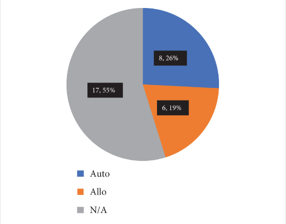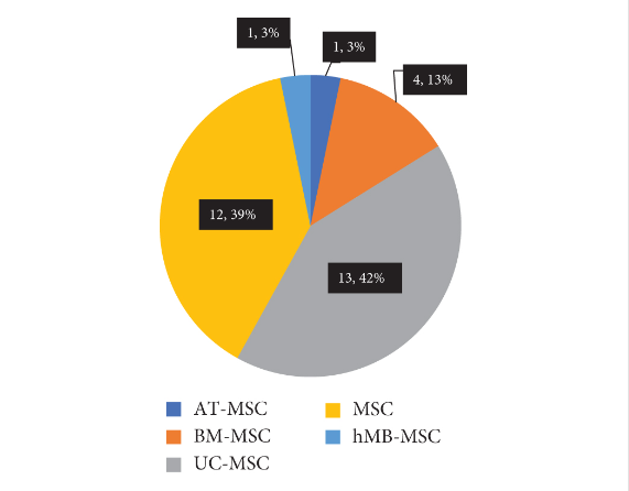 31例中,17例(54.8%)不清楚使用的是同種異體細胞還是自體細胞。然而,結果仍然表明與之前報道的頻率相比,同種異體MSCs治療的頻率有所增加。