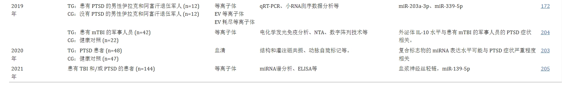研究表明這些疾病可能具有相似的病理生理機(jī)制。盡管越來越多的新興研究關(guān)注EV相關(guān)miRNA和PTSD的其他生物標(biāo)志物,但大多數(shù)研究結(jié)果仍需要進(jìn)一步的臨床驗(yàn)證。