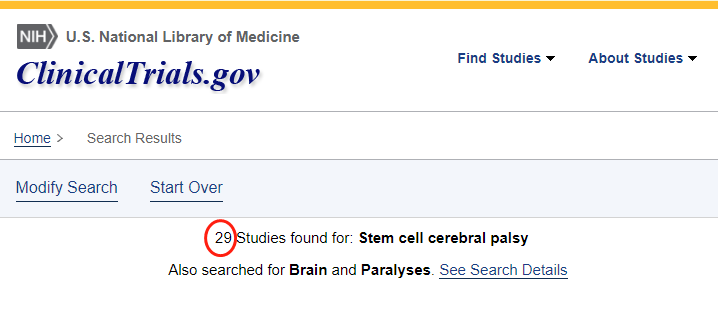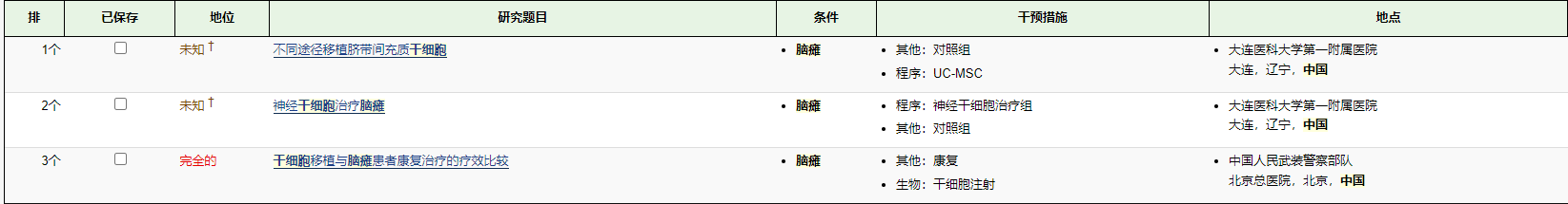 截止2022年12月,在美國(guó)國(guó)立衛(wèi)生研究院的最大臨床試驗(yàn)注冊(cè)庫(kù)clinicaltrials.gov網(wǎng)站上注冊(cè)的有關(guān)干細(xì)胞治療小兒腦癱的臨床研究項(xiàng)目有29項(xiàng),其中中國(guó)有三項(xiàng)。所涉及干細(xì)胞類型有神經(jīng)干細(xì)胞、骨髓干細(xì)胞、臍帶間充質(zhì)干細(xì)胞等,其中有些項(xiàng)目已經(jīng)完成,有些正在招募。