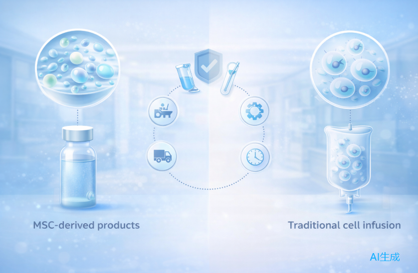 • MSC衍生物路線:交付的是“干細胞分泌或釋放的活性物質”,更接近一種成分可控的生物制劑,重點研究其特定組分在體內的劑量效應與安全性。