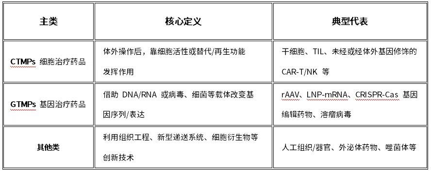 新政首次在官方文件中將先進治療藥品(ATMP)明確劃分為三大核心類別