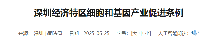 深圳作為粵港澳大灣區科創核心,較早啟動細胞與基因產業專項支持計劃,圍繞關鍵技術研發、成果轉化平臺建設及產業鏈集聚給予持續投入,已形成較完整的創新生態。[2]